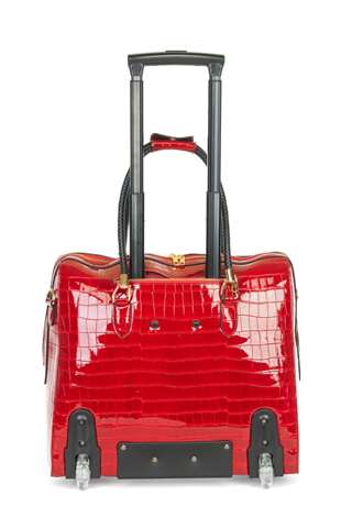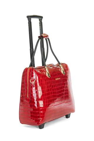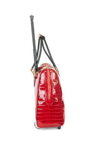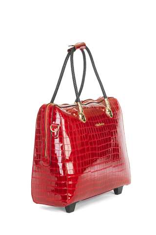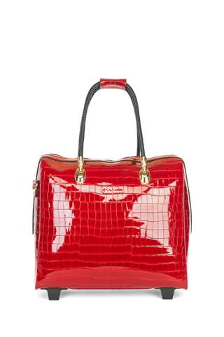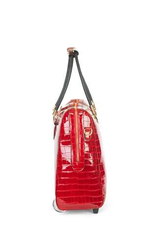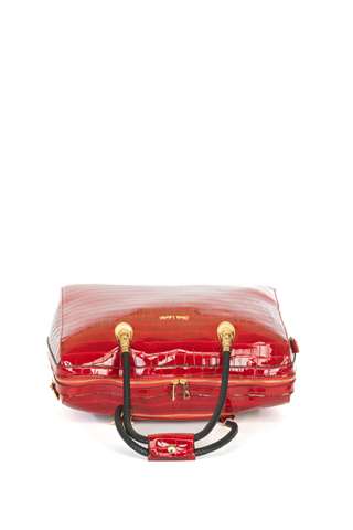 De gelakte rode kleur geeft deze tas een tijdloze elegantie.